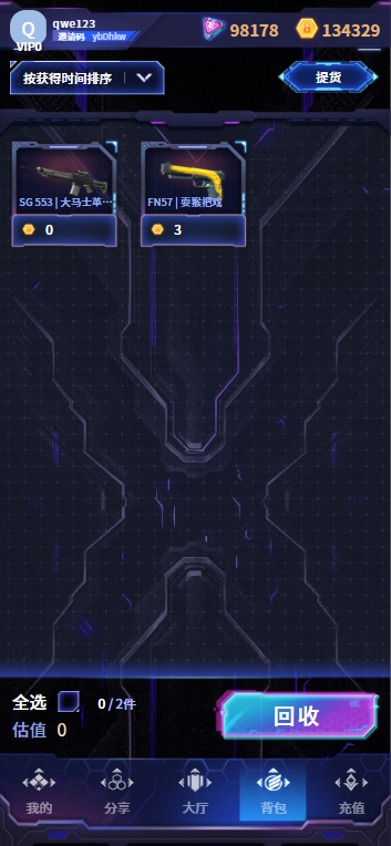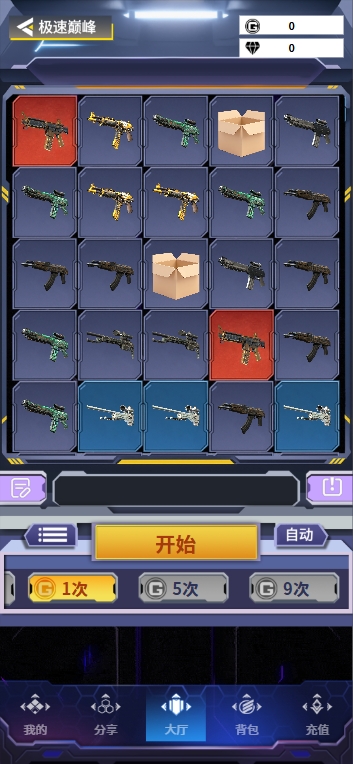 玩法说明:用户可在6种武器盲盒中选择[涨价] 或[跌价],选择与指数涨跌对应即可获得[指数盲盒]否则可获得[指数碎片],获得的盲盒与碎片可在行囊中查看。