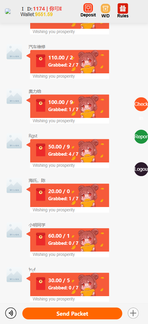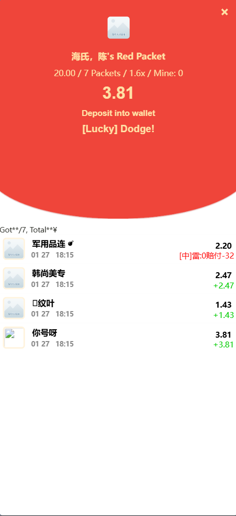 红包游戏:完整的扫雷游戏逻辑,支持自定义红包金额、雷数规则。