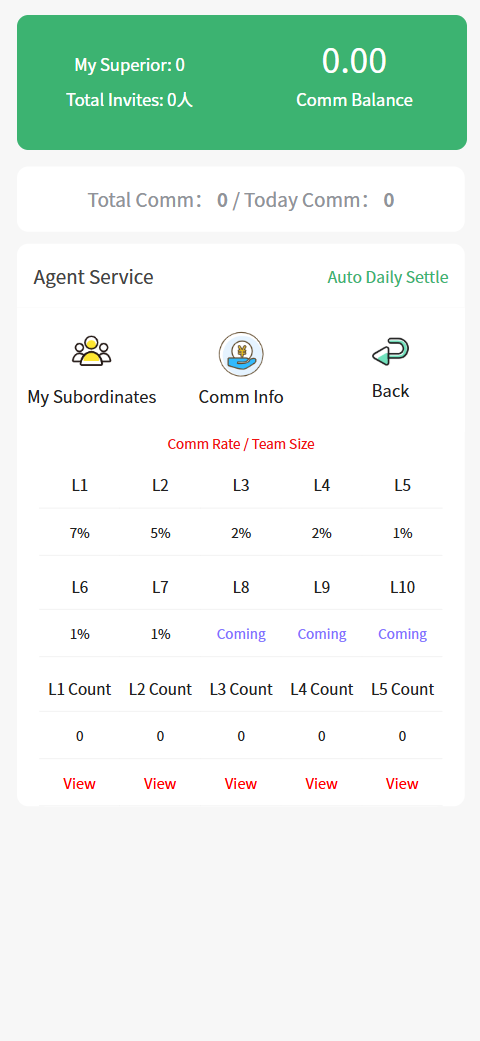 任务与奖励:包含每日签到、分享获佣、升级奖励等激励机制。